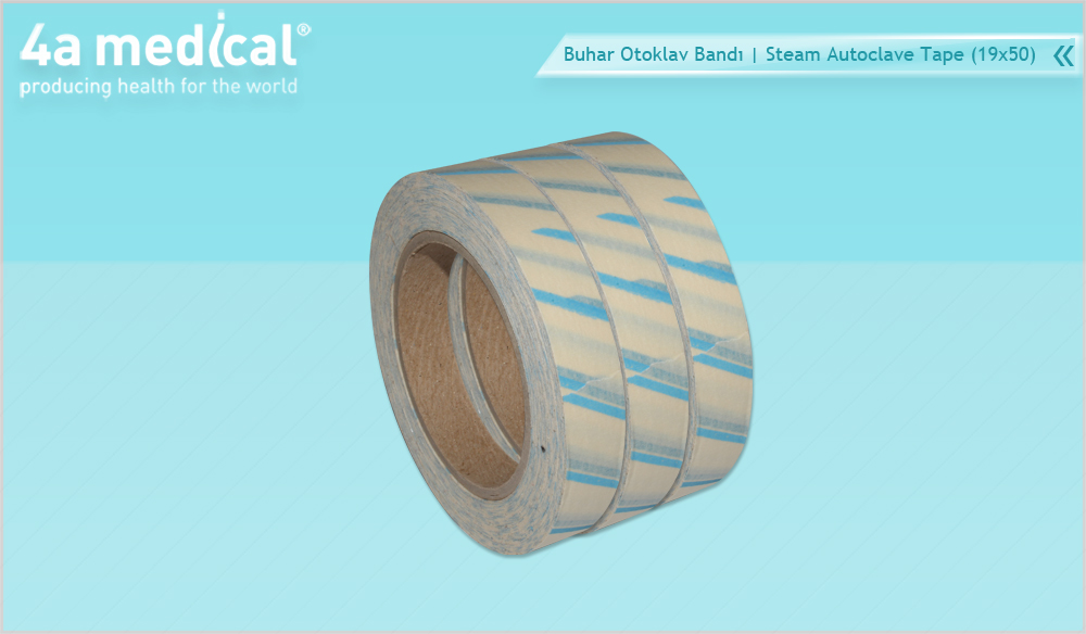 Su bazlı ve toksik olmayan kimyasal indikatör bandı buharla sterilizasyon şartlarına maruziyetten sonra renk değiştiren striplere sahiptir işlem görmüş malzemelerin hemen belirlenmesini sağlar.